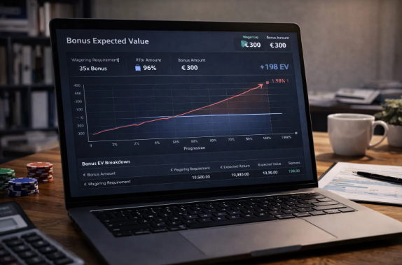 Ein Bonus wird dann +EV, wenn der zusätzliche Bonuswert den erwarteten Verlust aus den Umsatzanforderungen übersteigt. Dies ist häufig bei niedrigen Wagering-Anforderungen und hohem RTP der Fall.